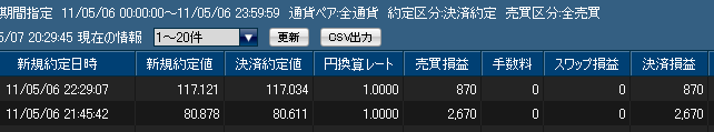 ユーロ円 売り:117.121 → 決済:117.034 = 益:870円