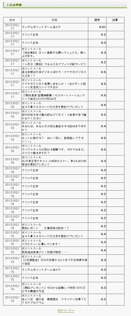 ここから得られるポイントはショボいが