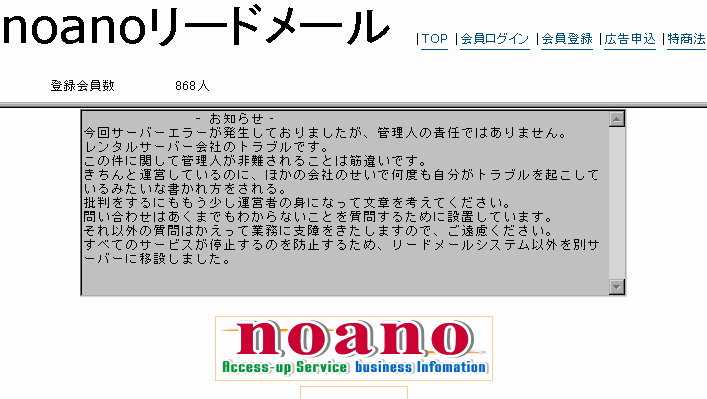 http://noano.sakura.ne.jp/cgi-bin/leadmail/leadmail/ より> - お知らせ‐