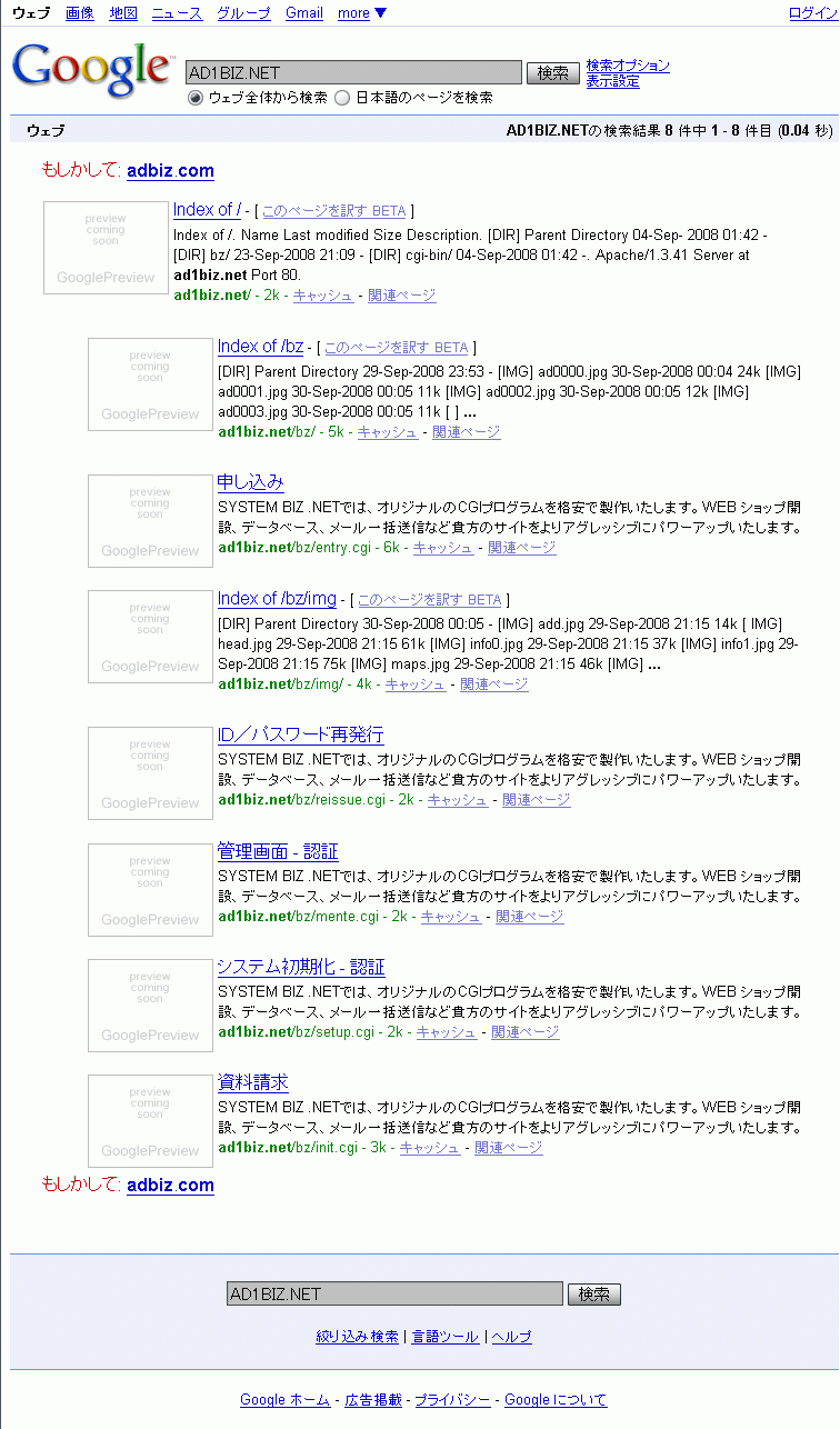 グゥ~「AD1BIZ.NET」をGoogle検索してみると丸わかり