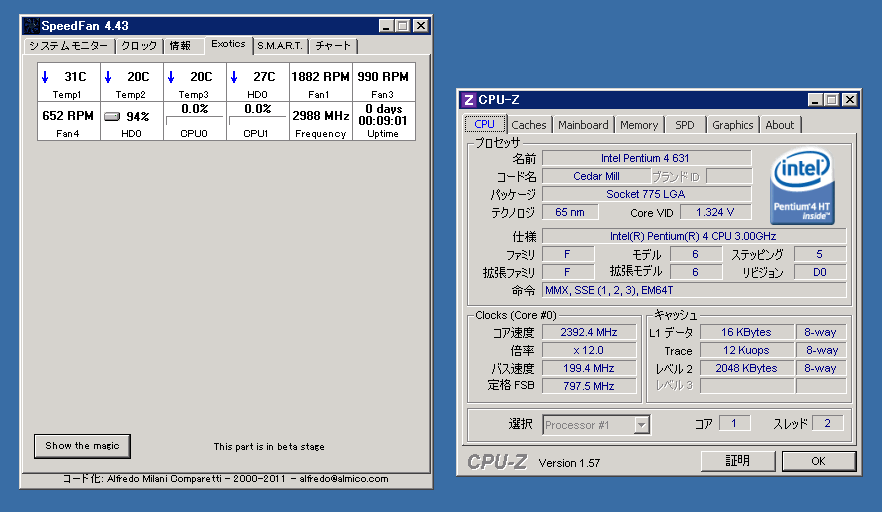Pentium 4 (640) 3.2G (SL8Q6) → Pentium 4 (631) 3.0G (SL9KG) に換装