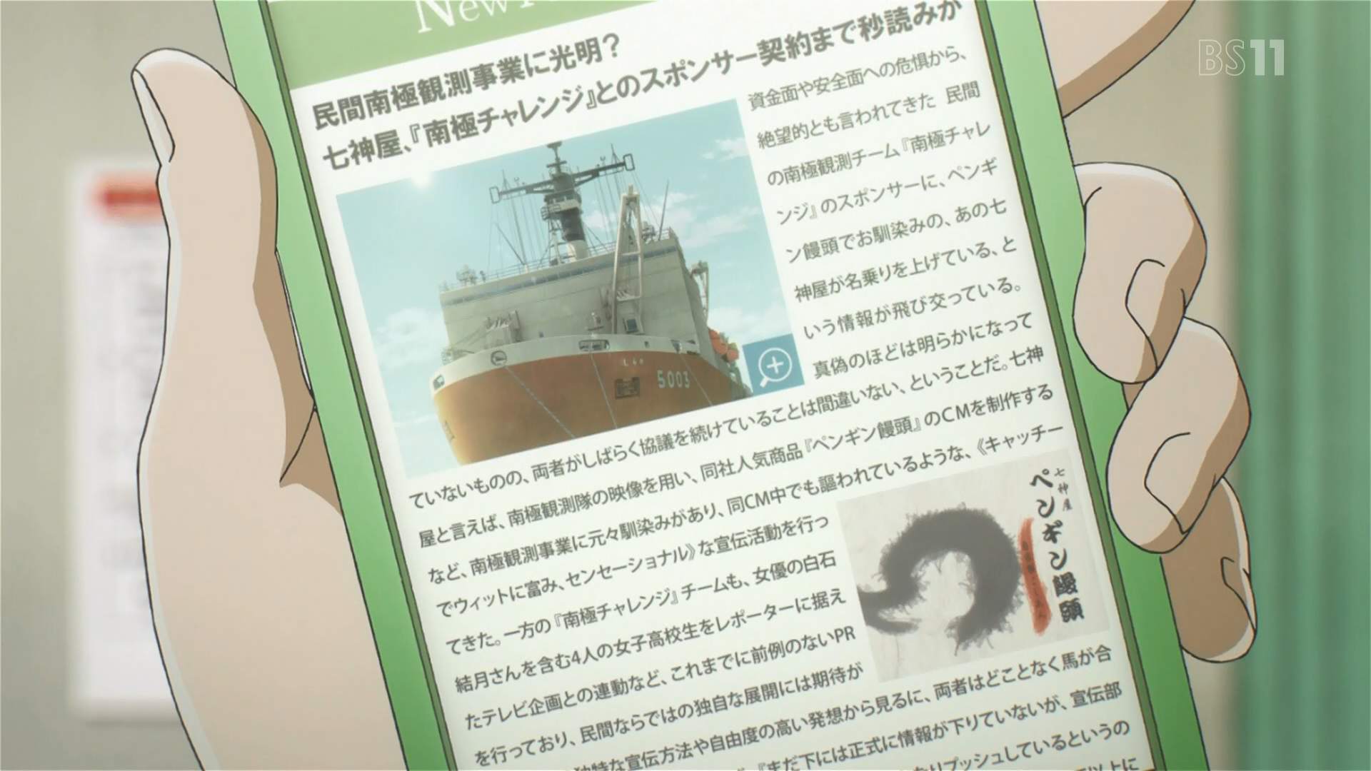 | 民間南極観測事業に光明? 七神屋、『南極チャレンジ』とのスポンサー契約まで秒読みか 資金面や安全面への危惧から、絶望的とも言われてきた 民間観測チーム『南極チャレンジ』のスポンサーに、ペンギン饅頭でお馴染みの、あの七神屋が名乗りを上げている、と言う情報が飛び交っている。真偽のほどは明らかになっていないものの、両者がしばらく協議を続けていることは間違いない、と言うことだ。七神屋と言えば、南極観測隊の映像を用い、同社人気商品『ペンギン饅頭』のCMを制作するなど、南極観測事業に元々馴染みがあり、同CM中でも謳われているような、≪キャッチーでウイットに富み、センセーショナル≫な宣伝活動を行ってきた。一方の『南極チャレンジ』チームも、女優の白石結月さんを含む4人の女子高生をレポーターに据えたテレビ企画との連動など、これまでに前例のないPRを行っており、民間ならではの独自な展開には期待が――――― |