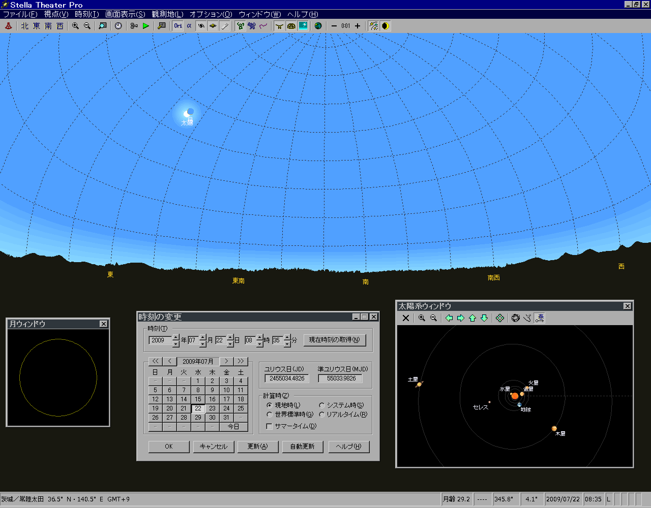昼(リアルタイム)のモードなので月と太陽しか表示されてない。