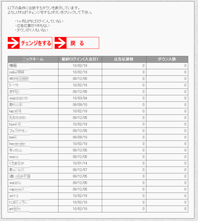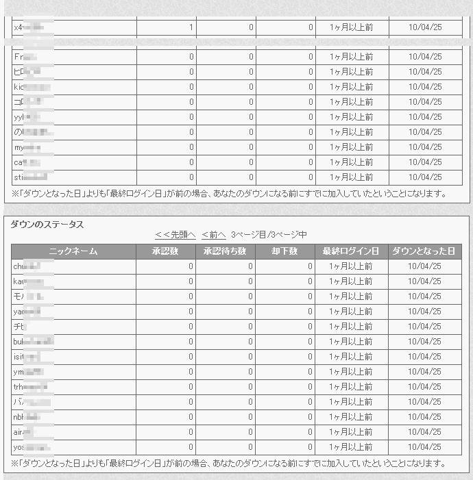全員、最終ログイン日が1ヶ月以上前でダウン無し。