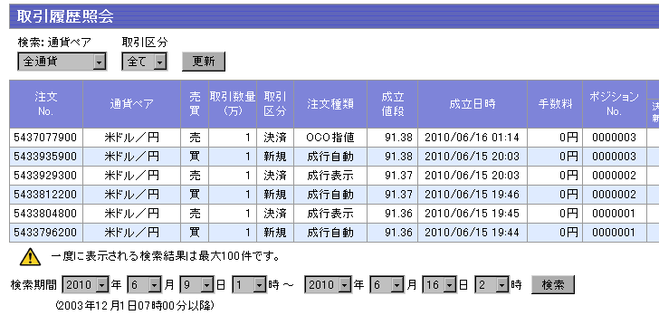 さて、昨夜のFXプライムの取引の結果。