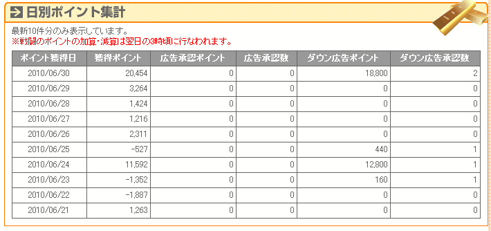 直近10日間のポイント獲得状況