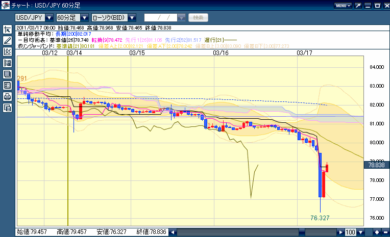 今回の大地震を受けて、ドル円は81円割れジリジリと円高方向。
