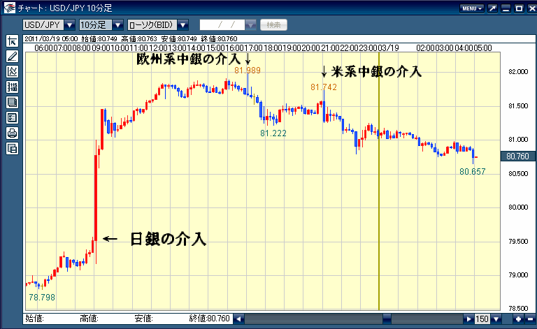 その後の午後と夜に実施されたG7の連中(欧州や米国の中央銀行)の介入では