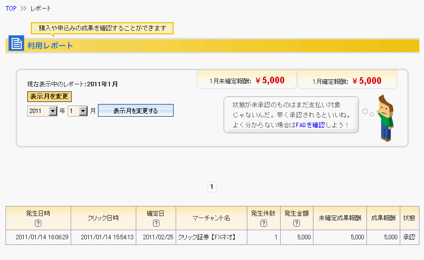 TrafficGateセルフアフィリエイトのFX案件『クリック証券【FXネオ】』が無事承認
